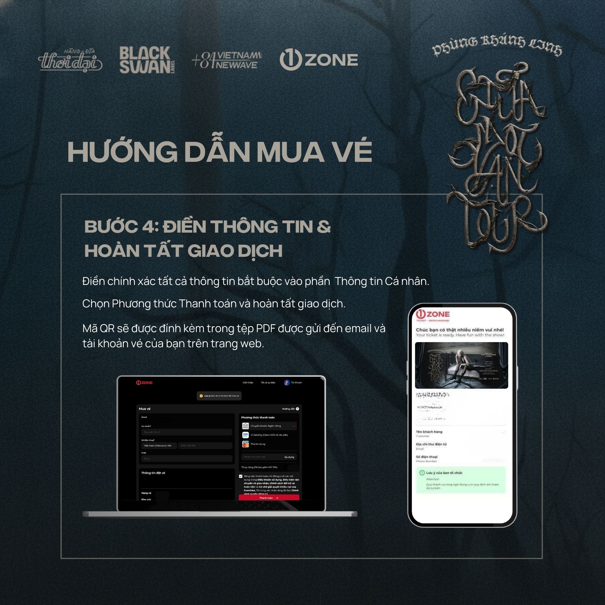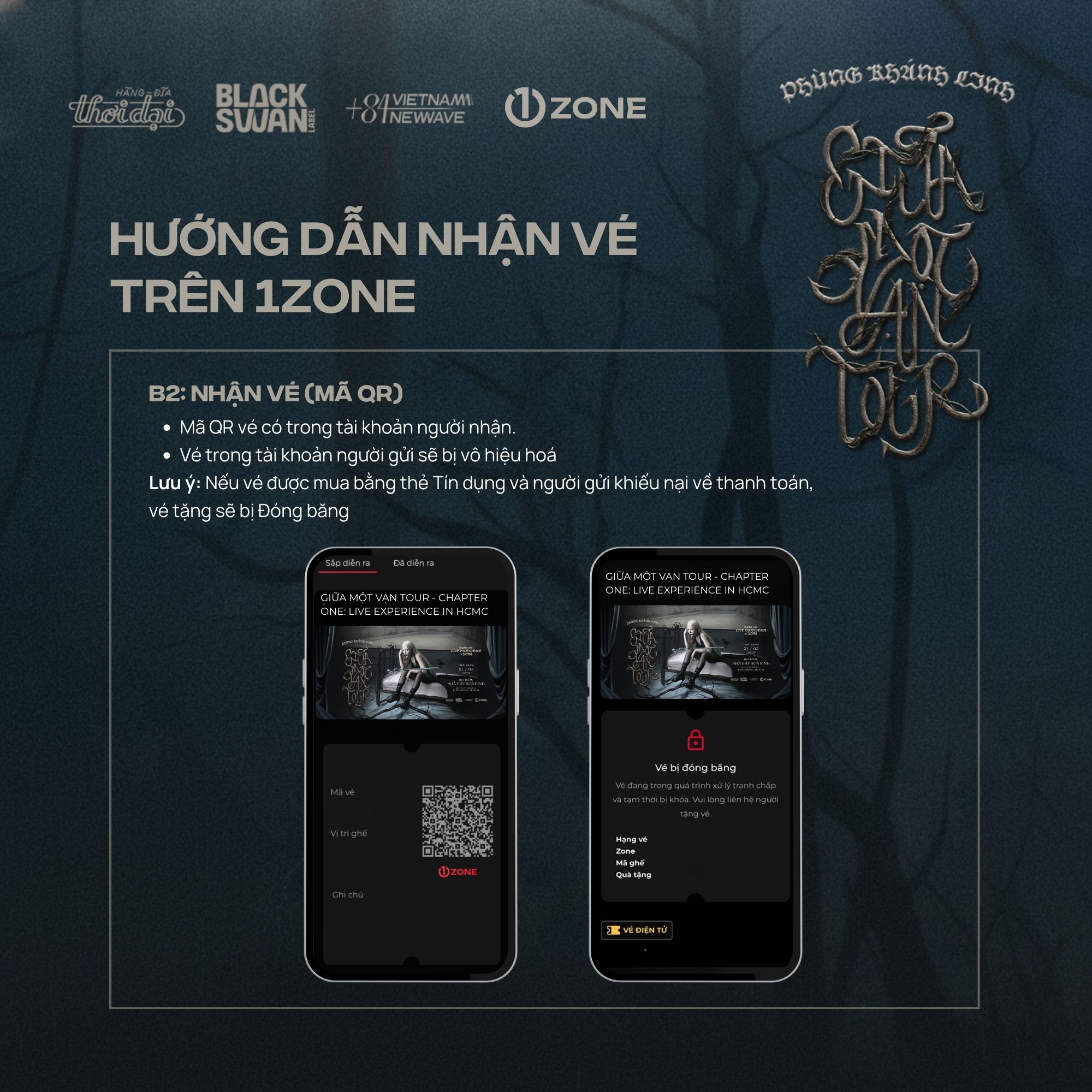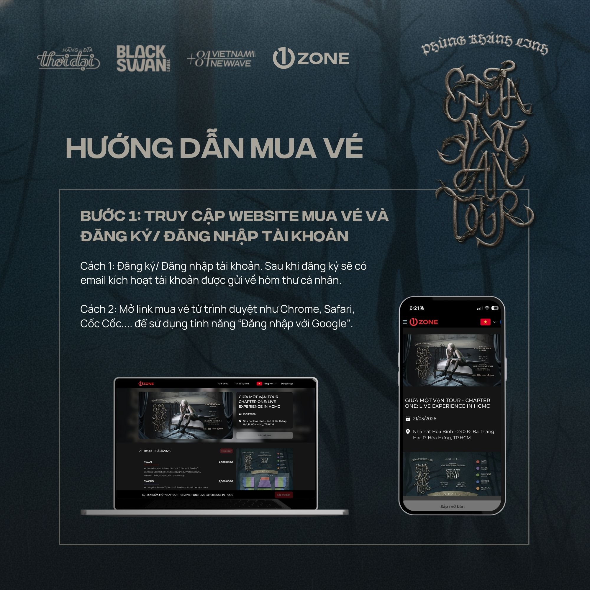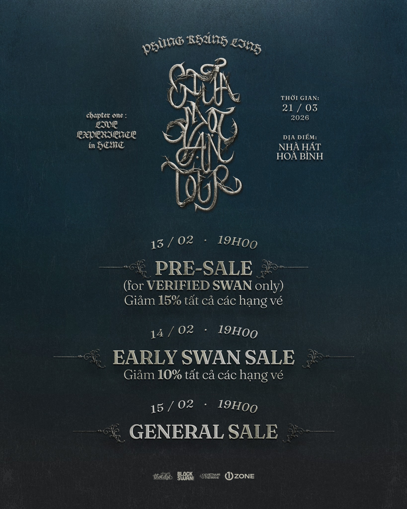 Vé bao gồm: Meet & Greet, Secret CD (Signed), Send-off, Bandana, Sound-check, Postcard (Signed), Photocard (5/5), Physical Ticket, Lanyard, PVC (SWAN Tag).