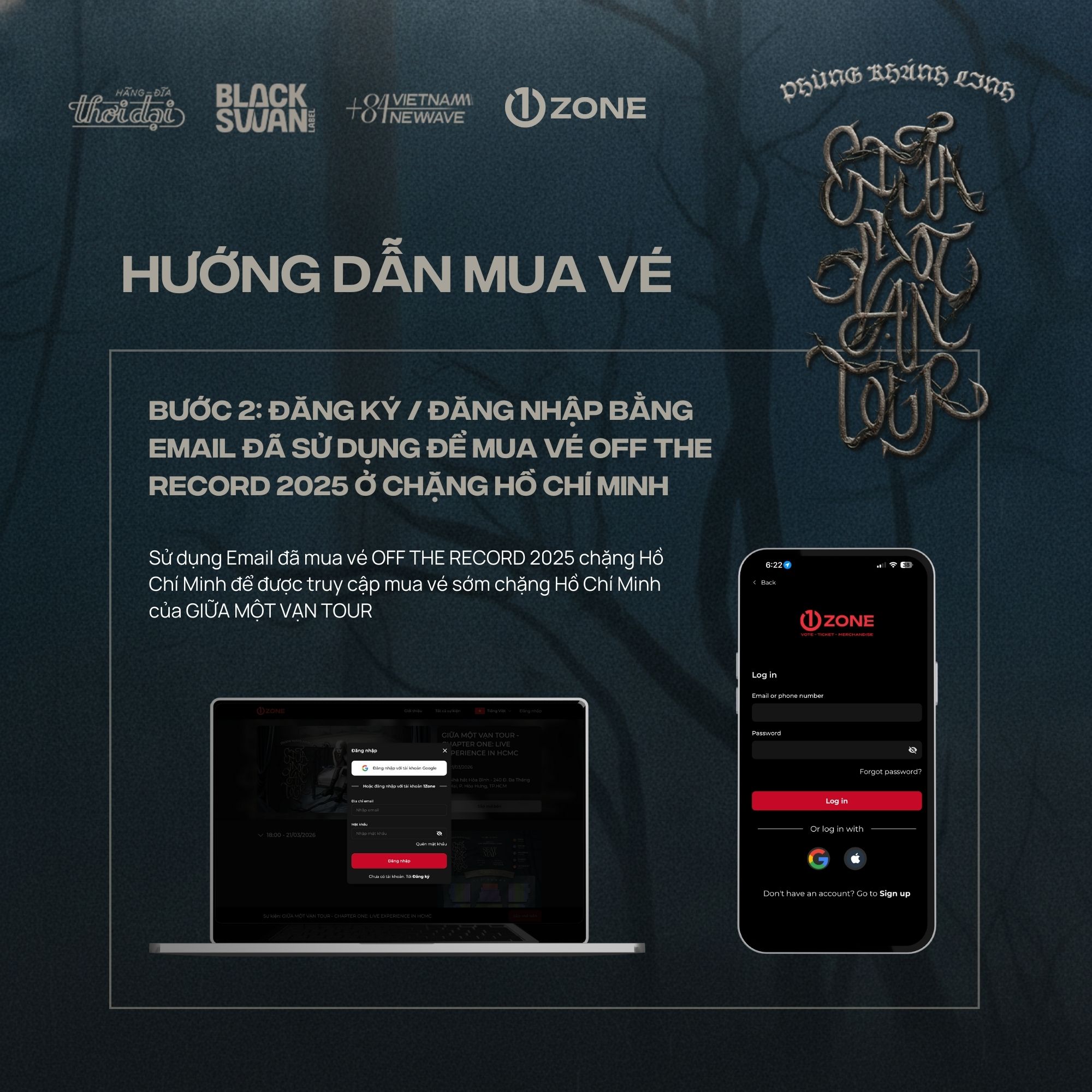 Vé bao gồm: Secret CD, Send-off, Bandana, Sound-check (random 20), Postcard (Signed), Photocard (4/5), Physical Ticket, Lanyard, PVC (SWORD Tag).