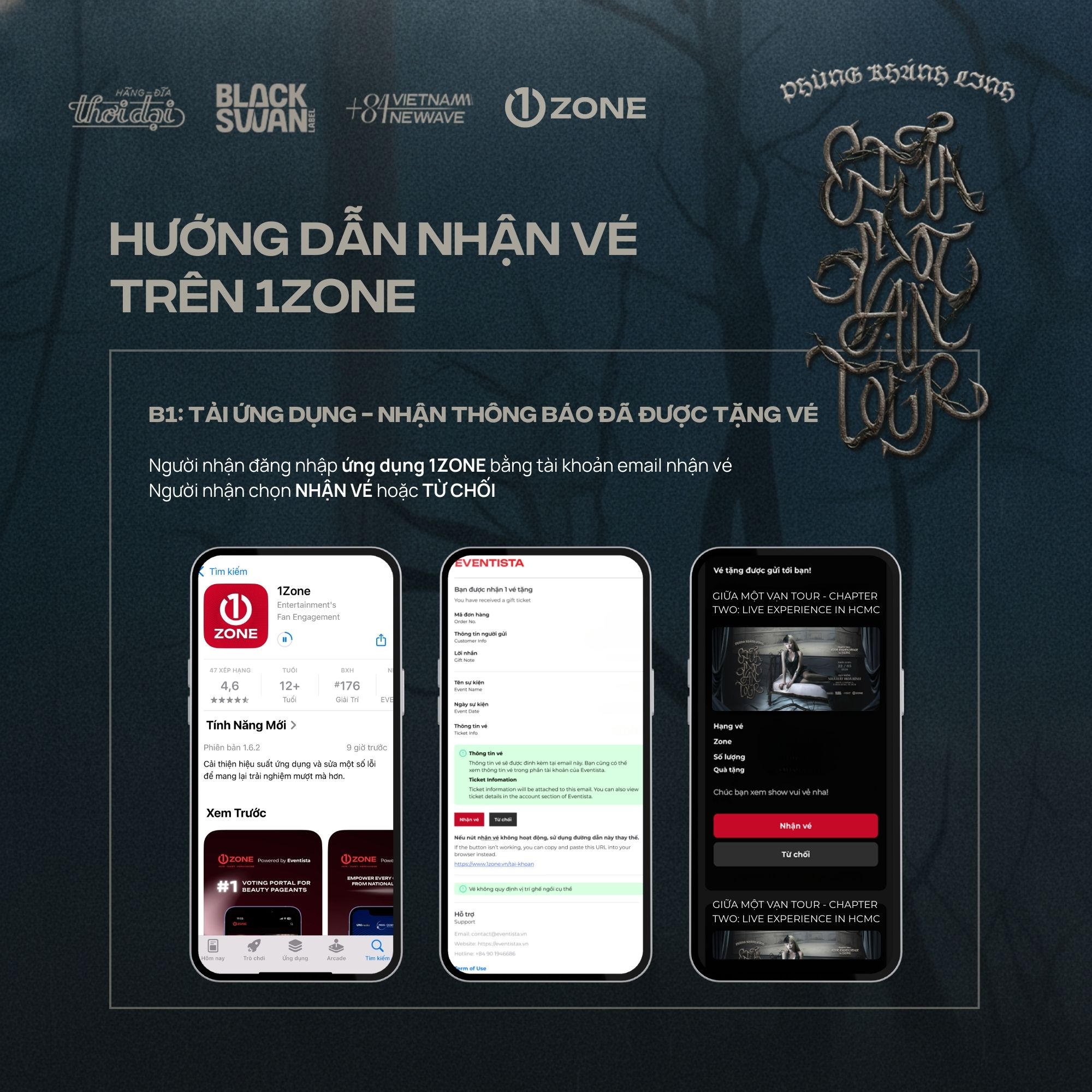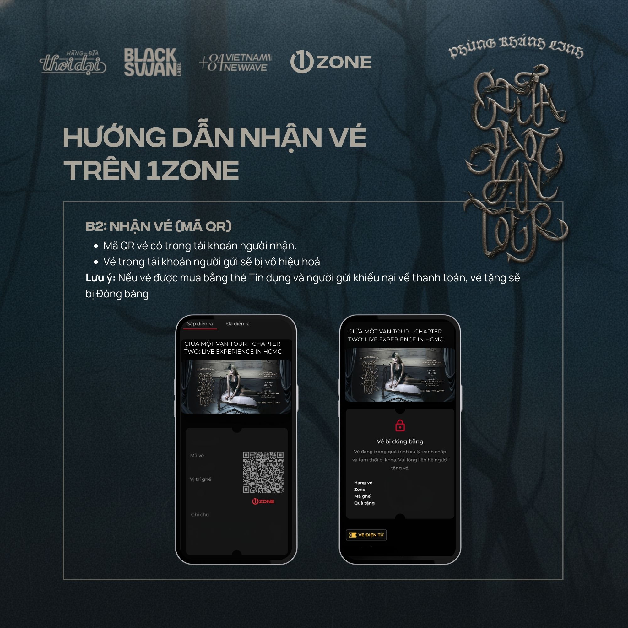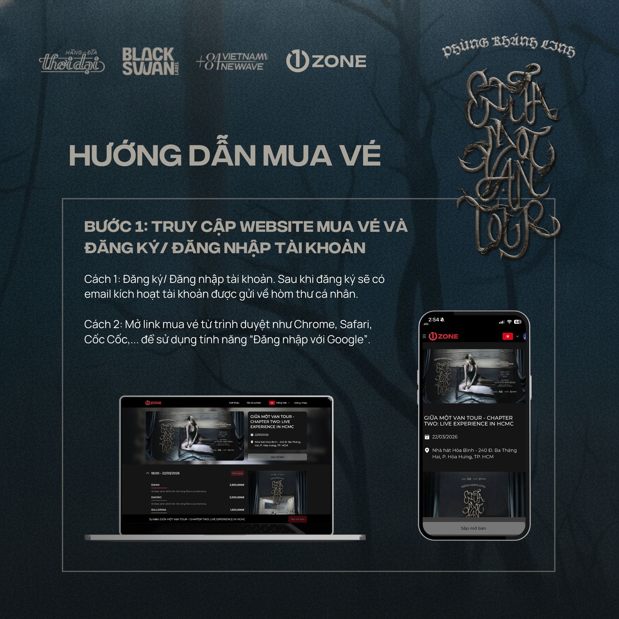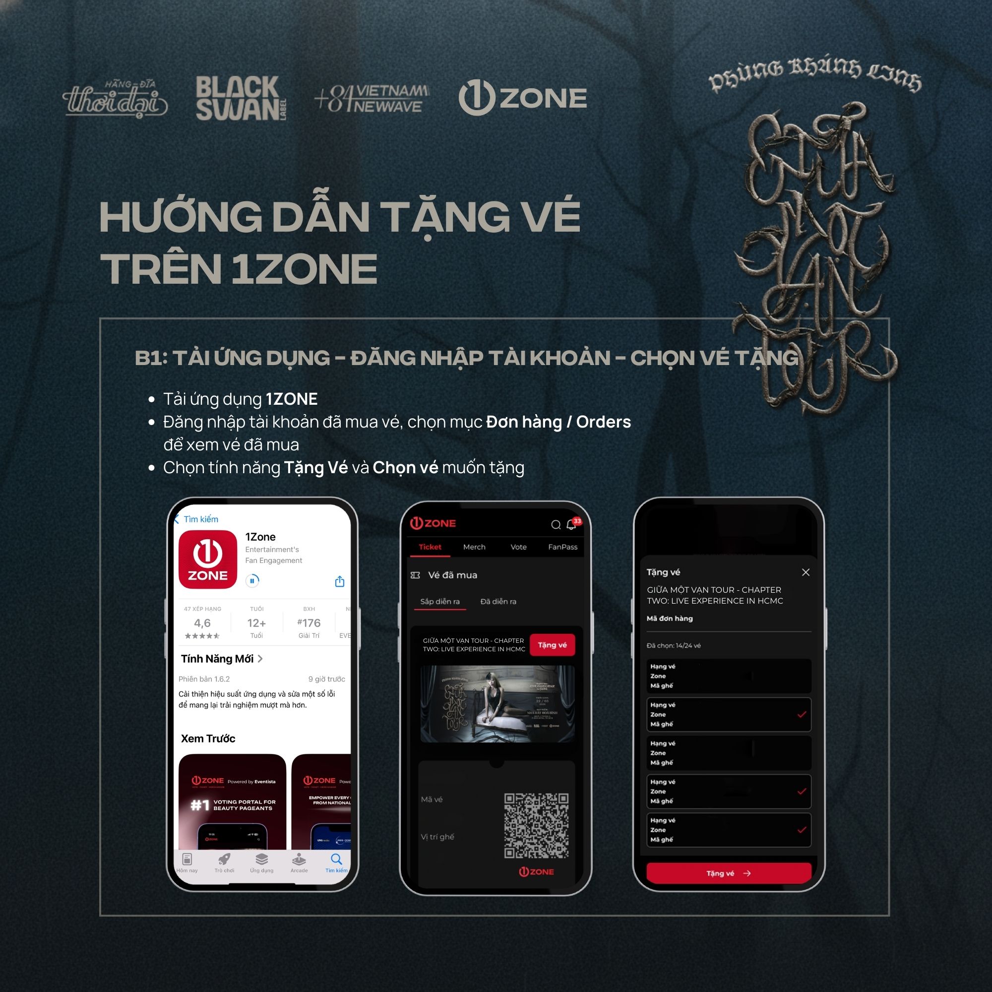 Vé bao gồm: Meet & Greet, Secret CD (Signed), Send-off, Bandana, Sound-check, Postcard (Signed), Photocard (5/5), Physical Ticket, Lanyard, PVC (SWAN Tag).