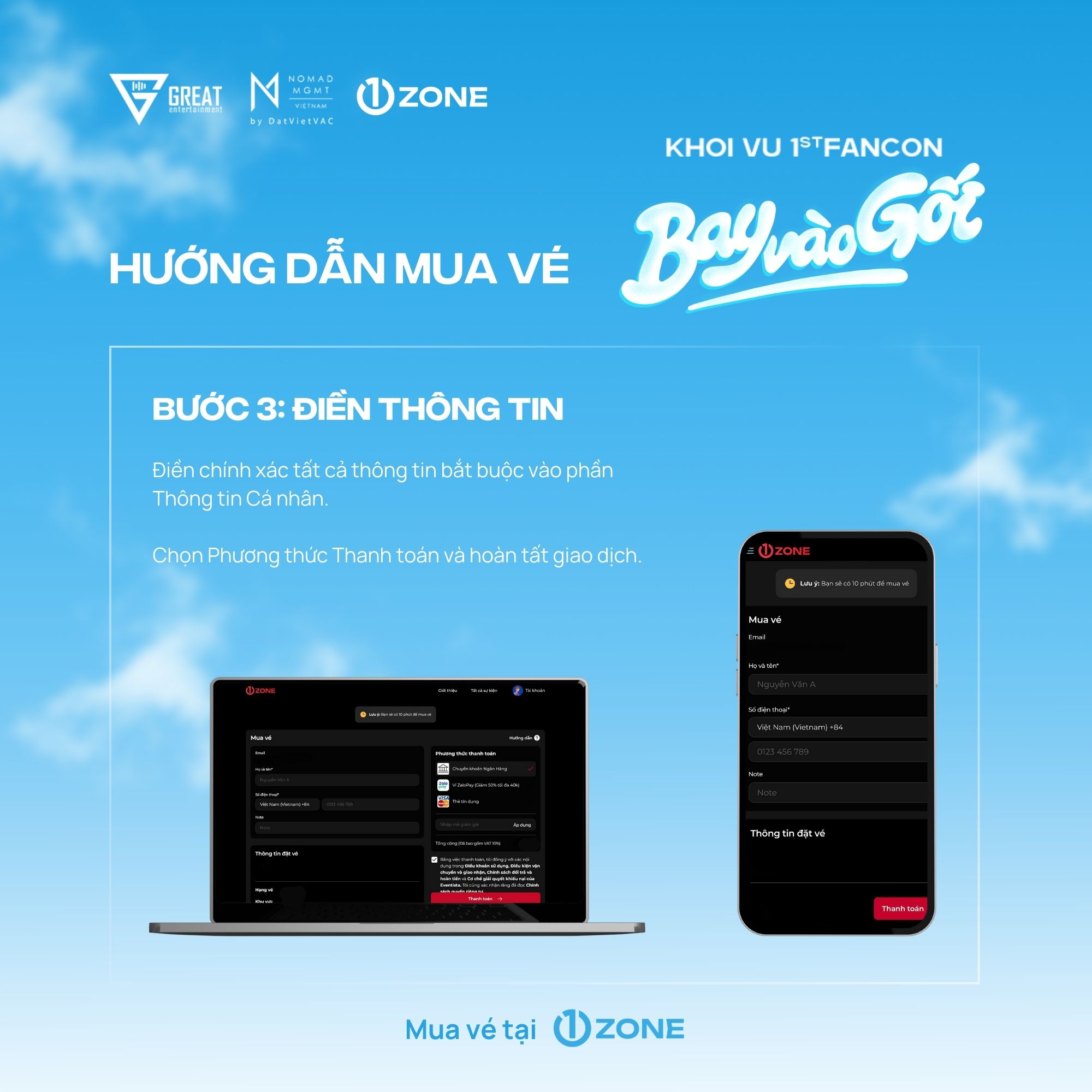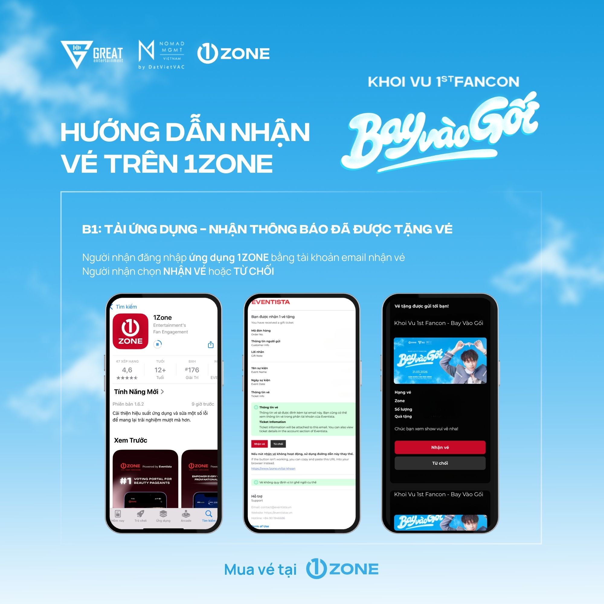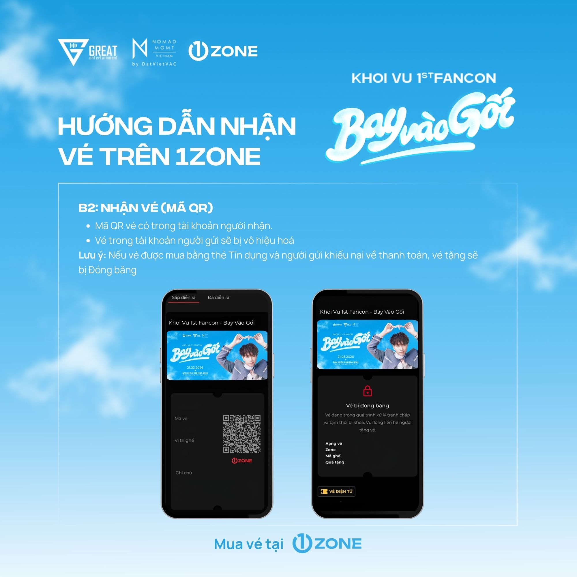 Vé bao gồm: Rehearsal (Random 30), Fansign (Random 20), Timeo Touch (Random 24), Photo Group (6:1), Vali Tag, Photocard (3/5 ver), Ticket, Passport, Sleep Coin.
