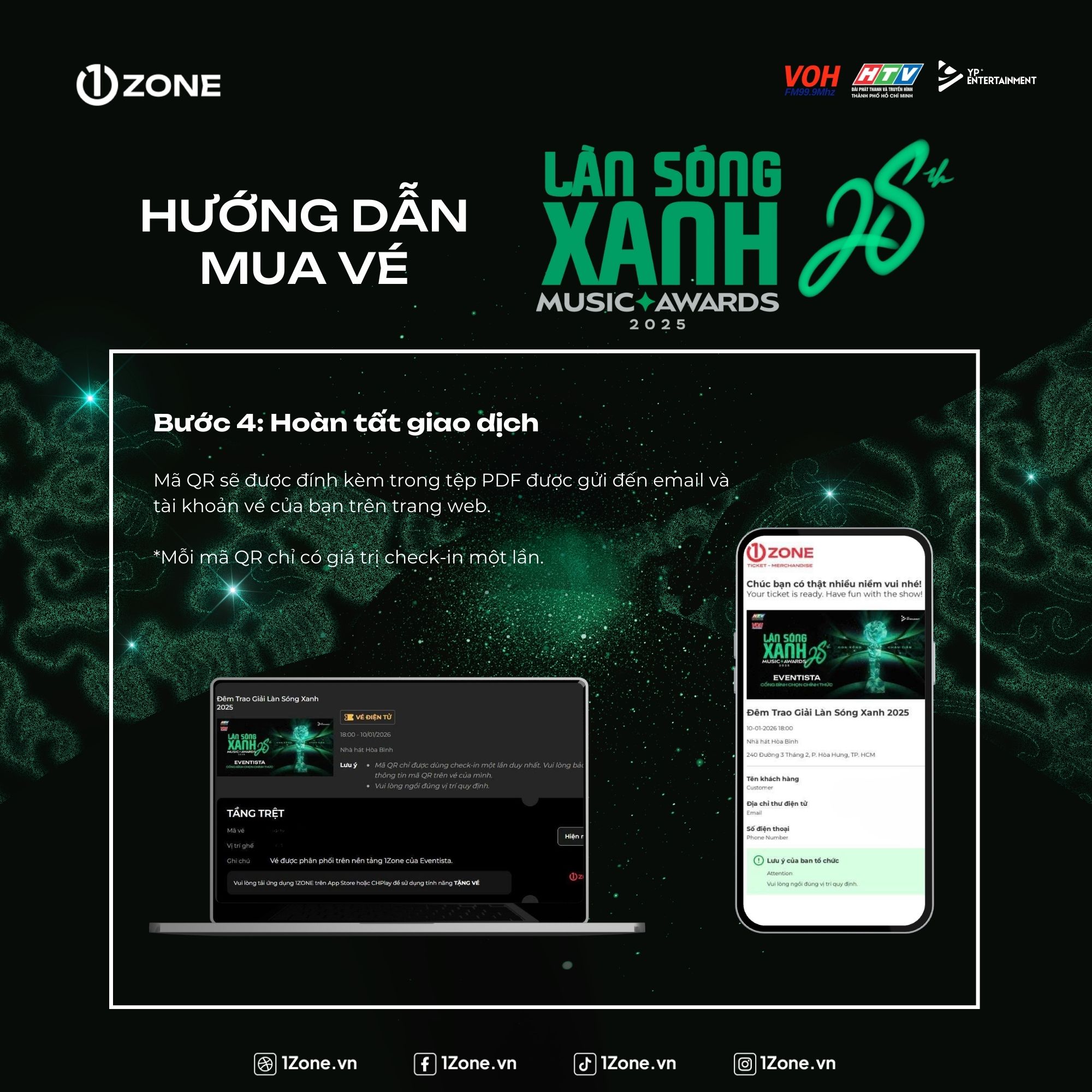 Vé được phân phối trên nền tảng 1Zone của Eventista.