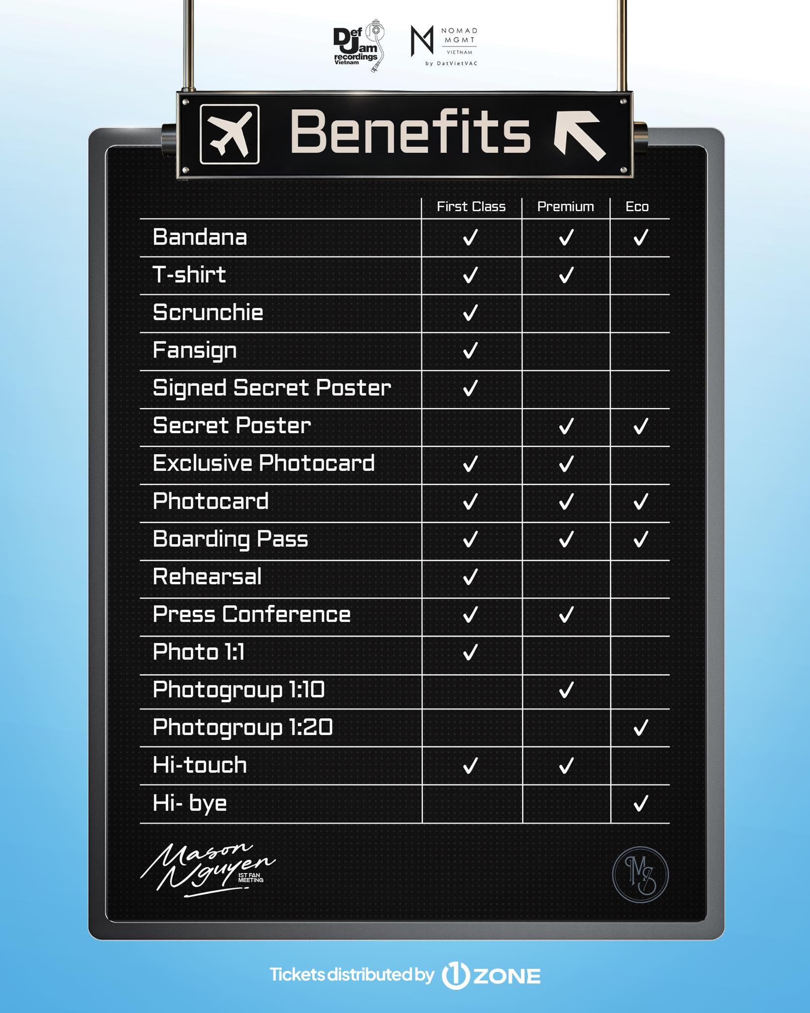 Vé bao gồm: Bandana, T-shirt, Secret Poster, Exclusive Photocard, Photocard, Boarding Pass, Press Conference, Photogroup 1:10, Hi-Touch.