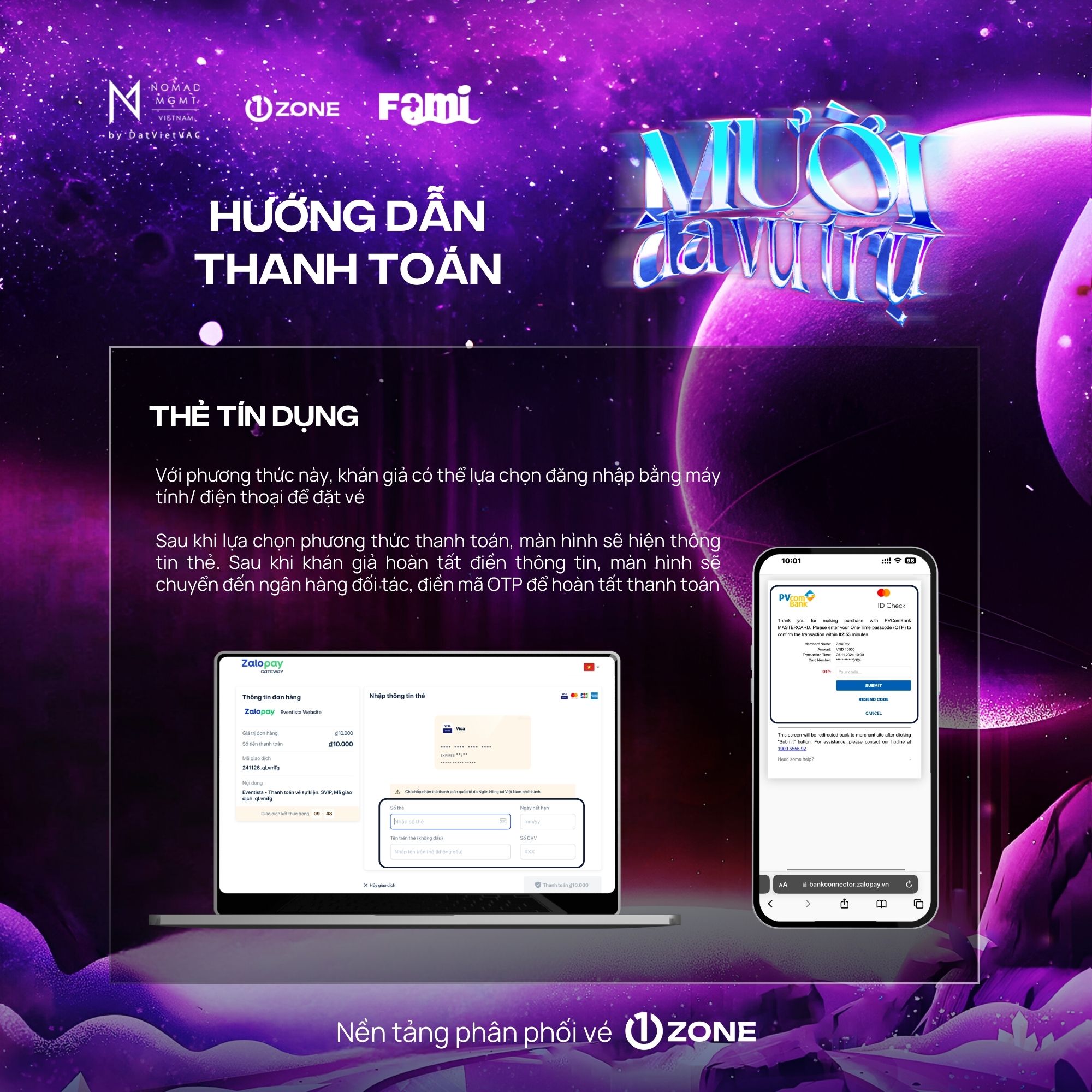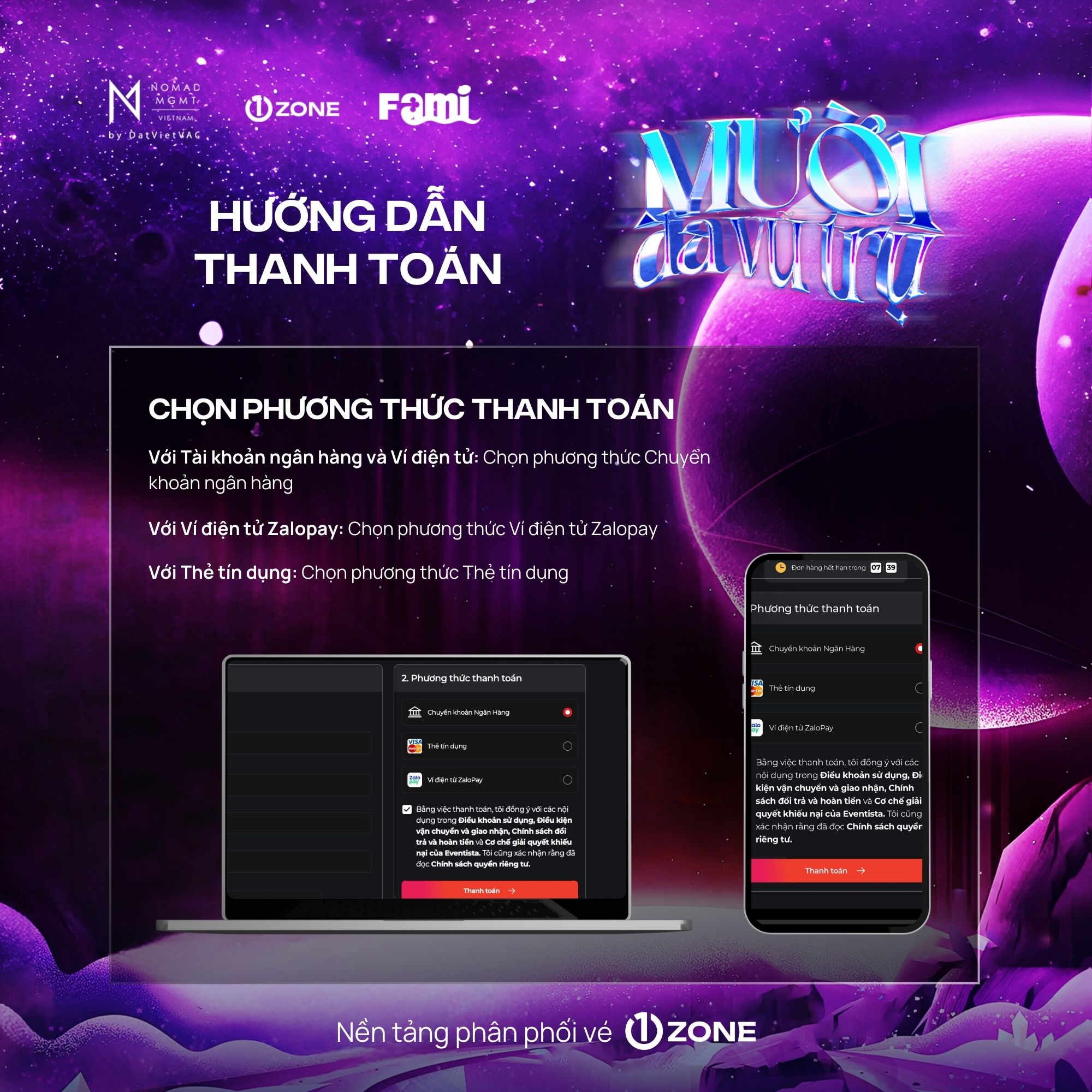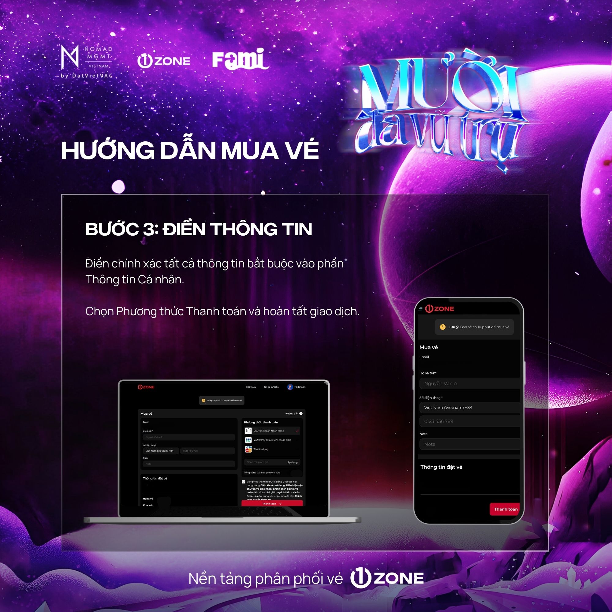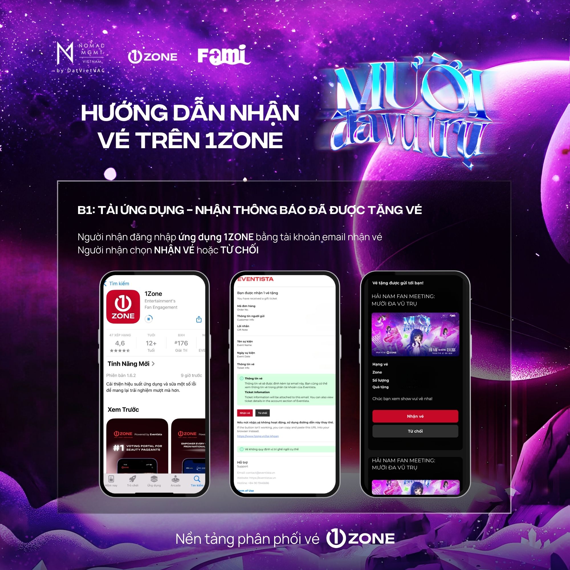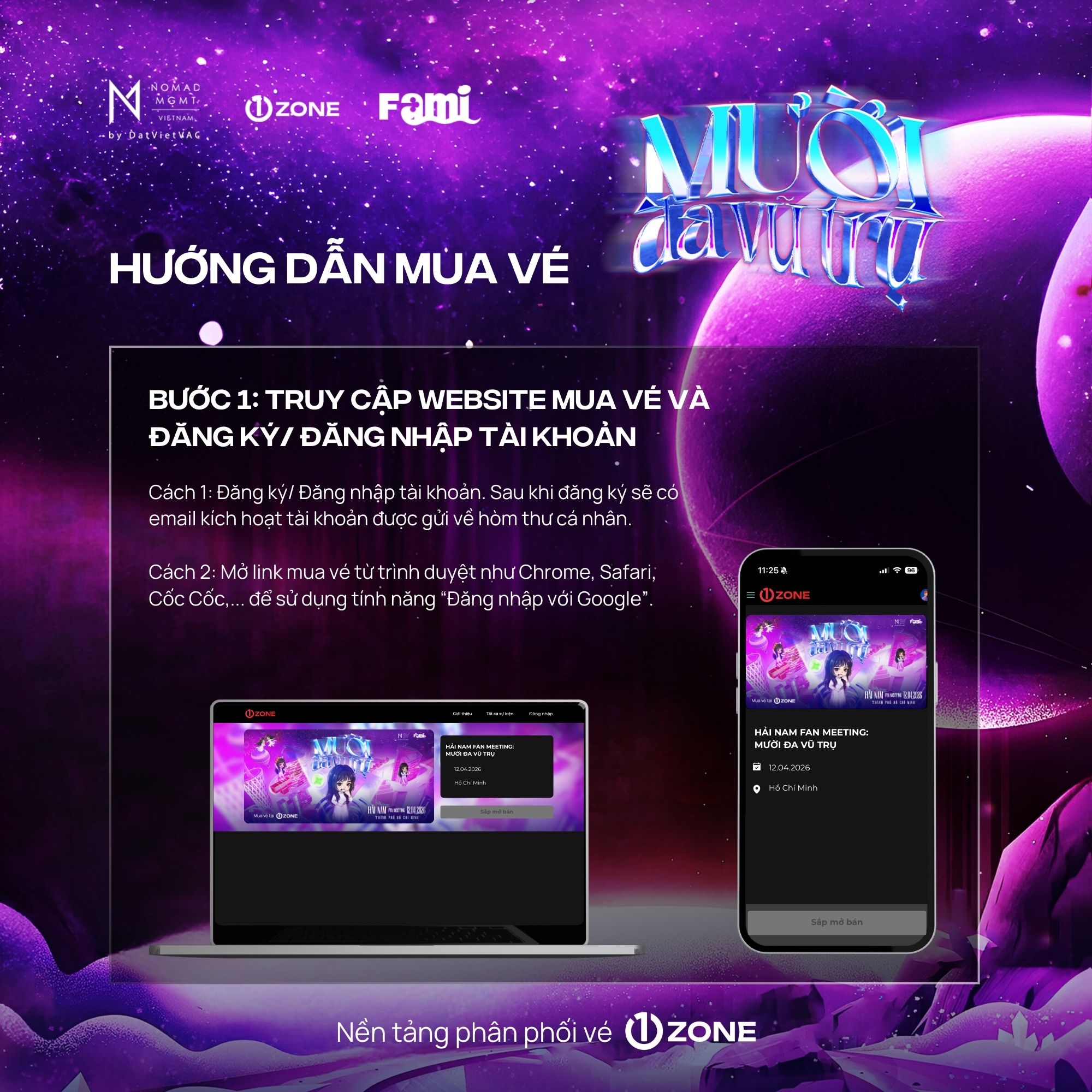 Vé bao gồm: Bandana, Designed Cup, Signed Poster, Soundcheck, Sticker, Boarding Pass, Photocard (6 cards), Special Comb, Lanyard, Fansign, Polaroid 1:1 (Random 50), Photo 1:1, Hi-Touch.