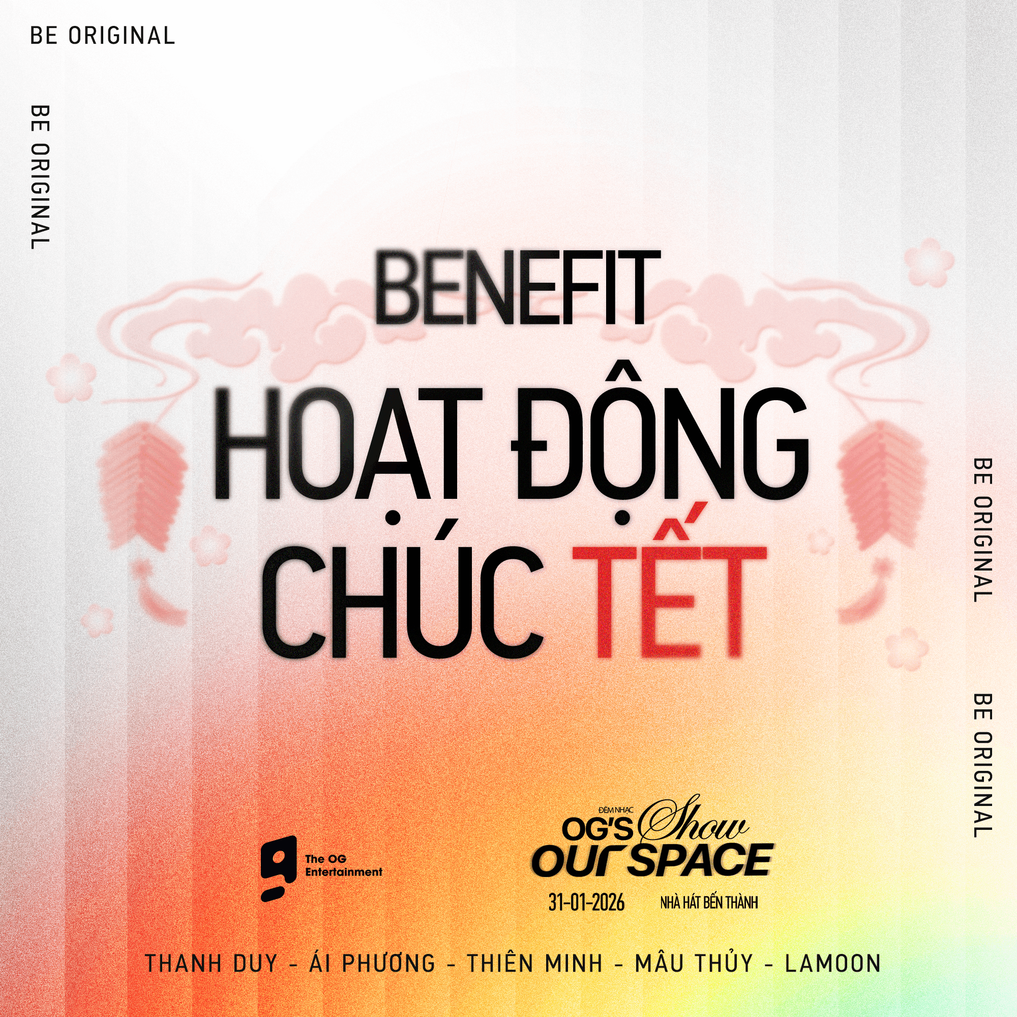 Vé bao gồm: Tham gia hoạt động chúc Tết (tất cả nghệ sĩ – 24/150 suất); Poster; Thẻ thông hành; 07 card (1 pick bias); Lanyard; Bao lì xì.