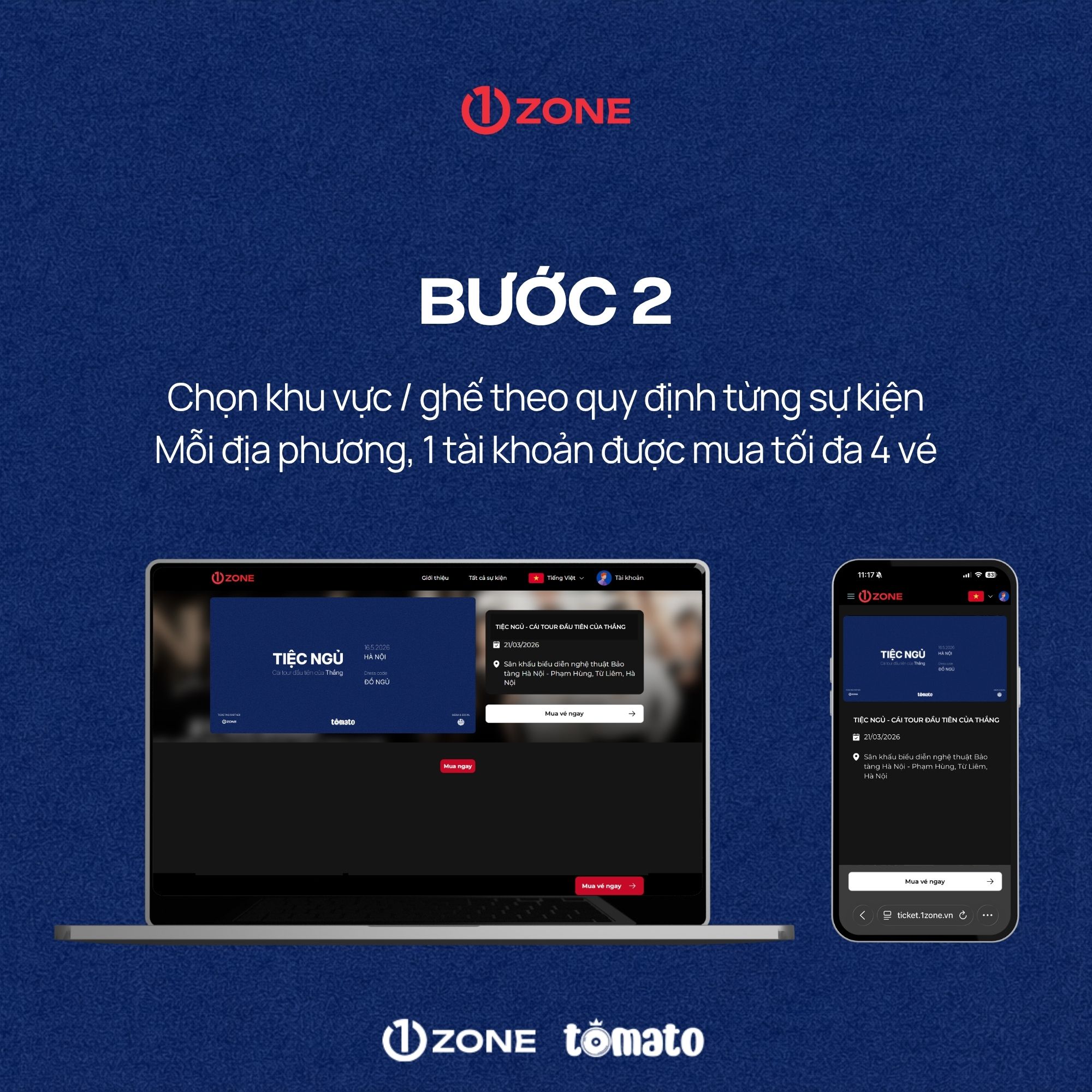 1. Khi mua vé hoàn tất, người mua được hiểu là đã đọc, hiểu và đồng ý với các Điều kiện và Điều khoản của Ban Tổ Chức (BTC) Tomato cũng như Quy Định Tham Gia Chương Trình “Tiệc Ngủ Tour” được niêm yết trên website 1ZONE.vn