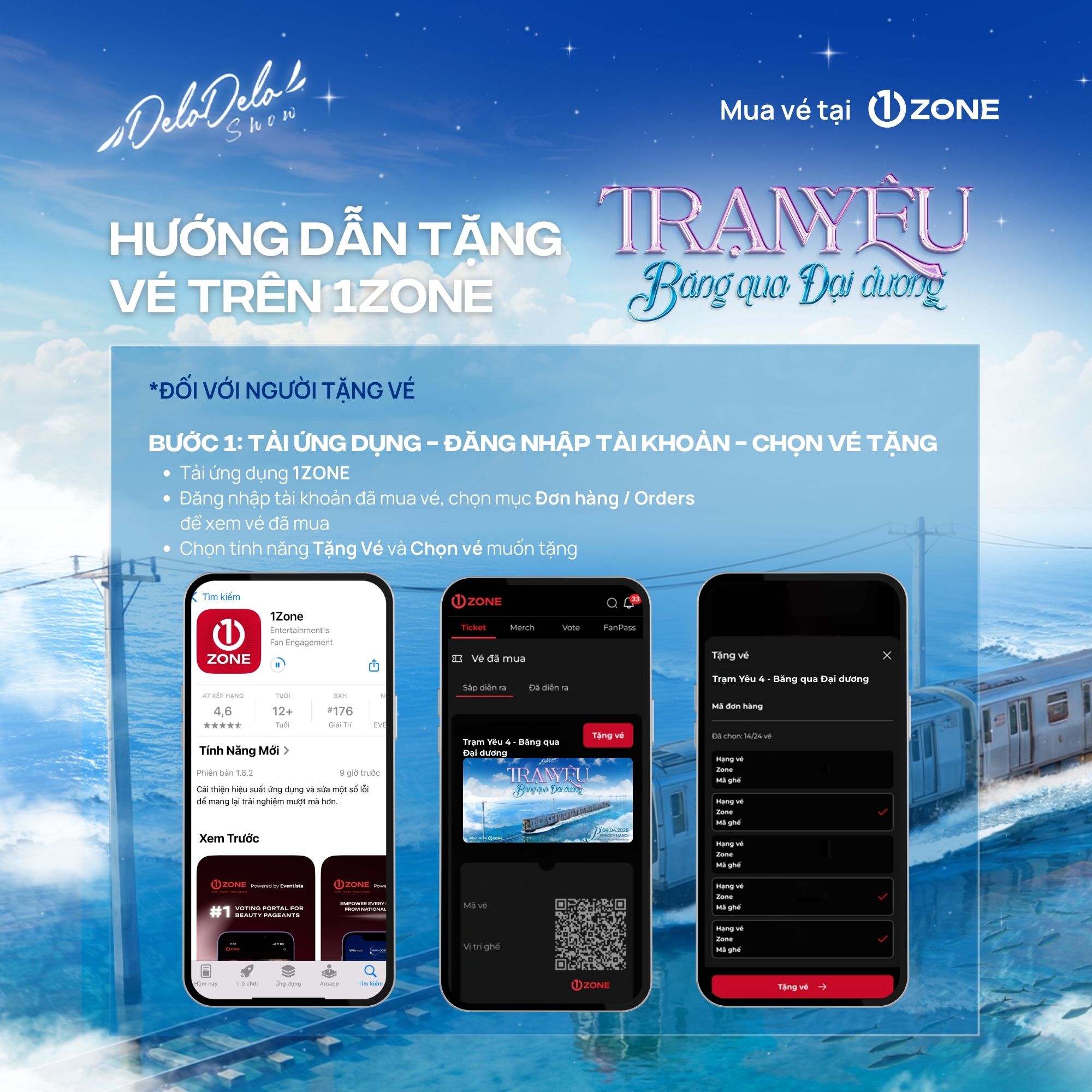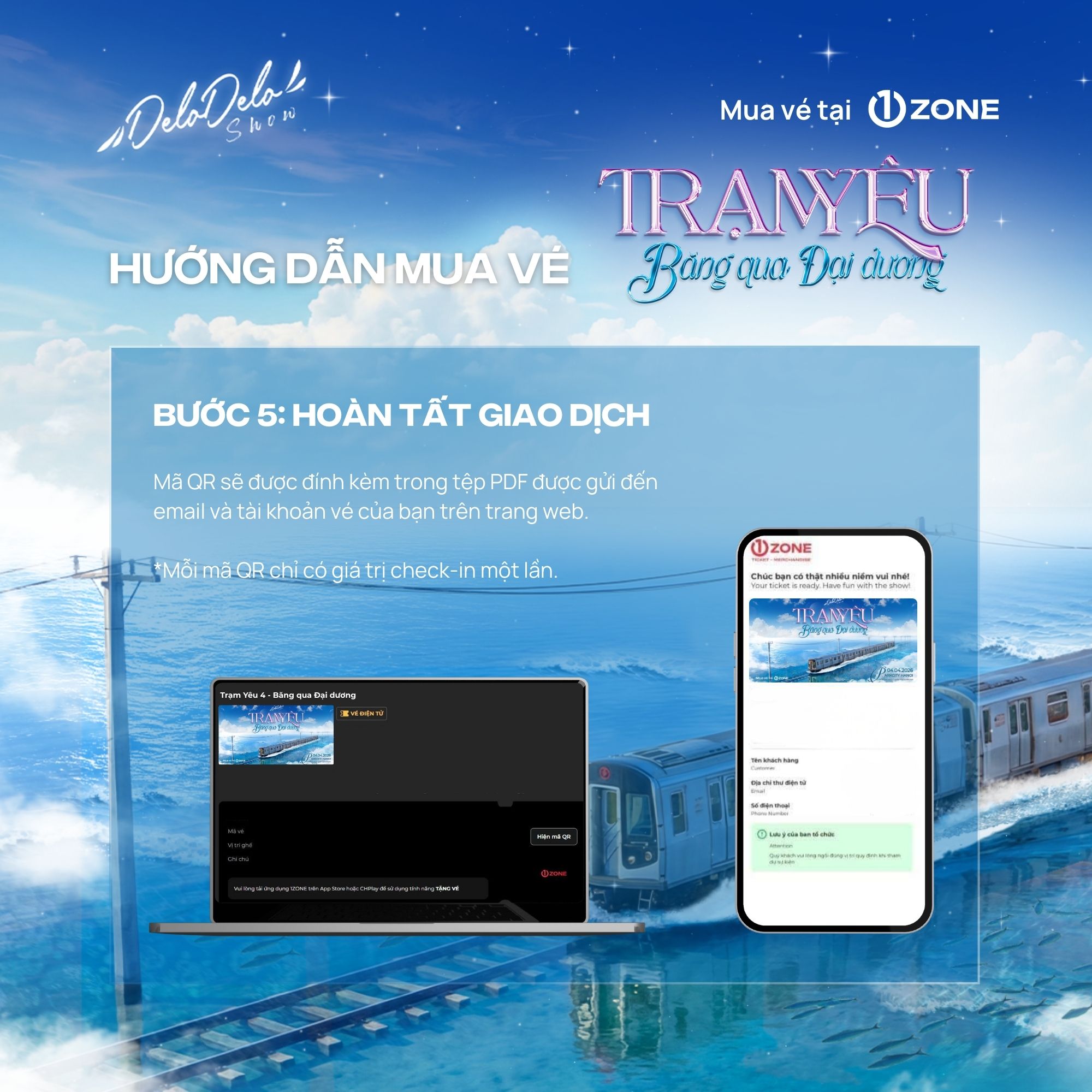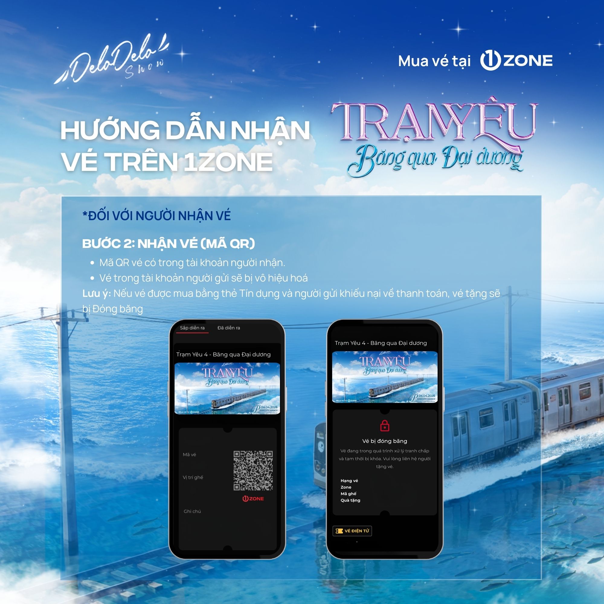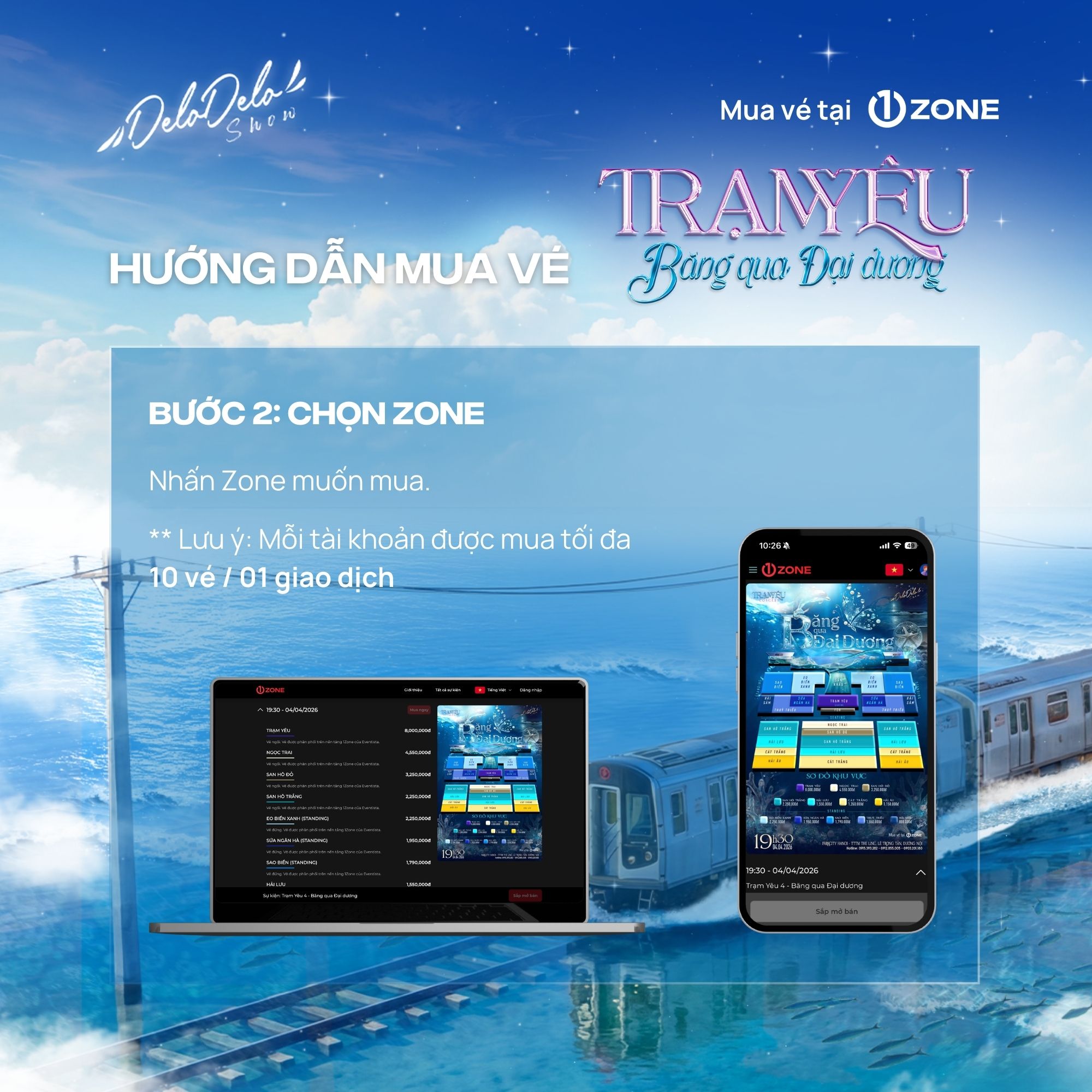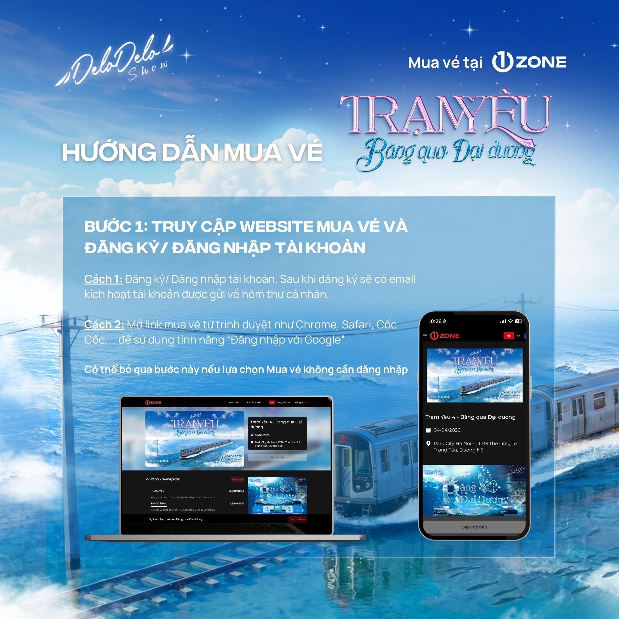 + 1ZONE là đơn vị bán vé độc quyền duy nhất được Delodelo show ủy quyền cho sự kiện Trạm Yêu - Băng qua Đại Dương. Quý khán giả cần thận trọng tránh mua phải vé trên các cổng bán vé giả mạo.