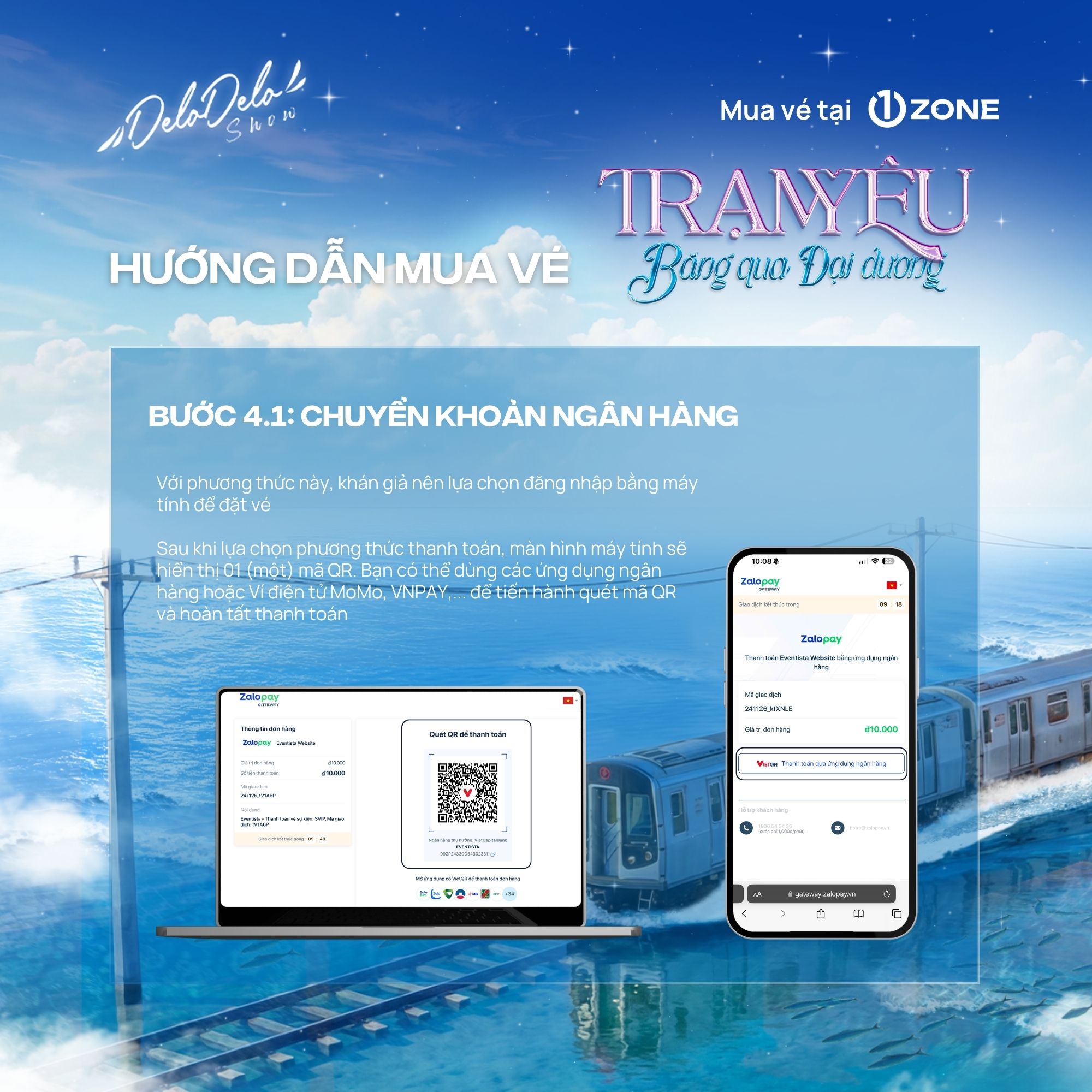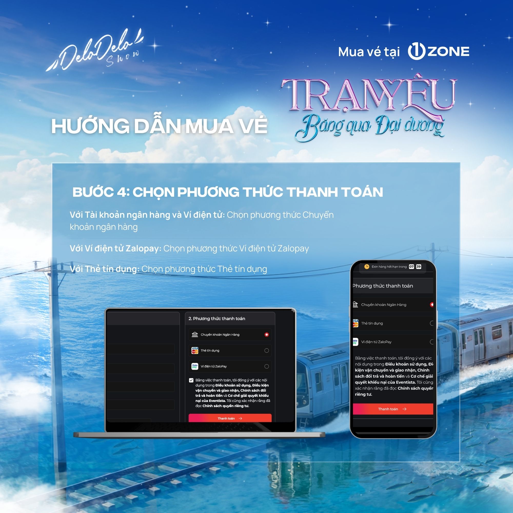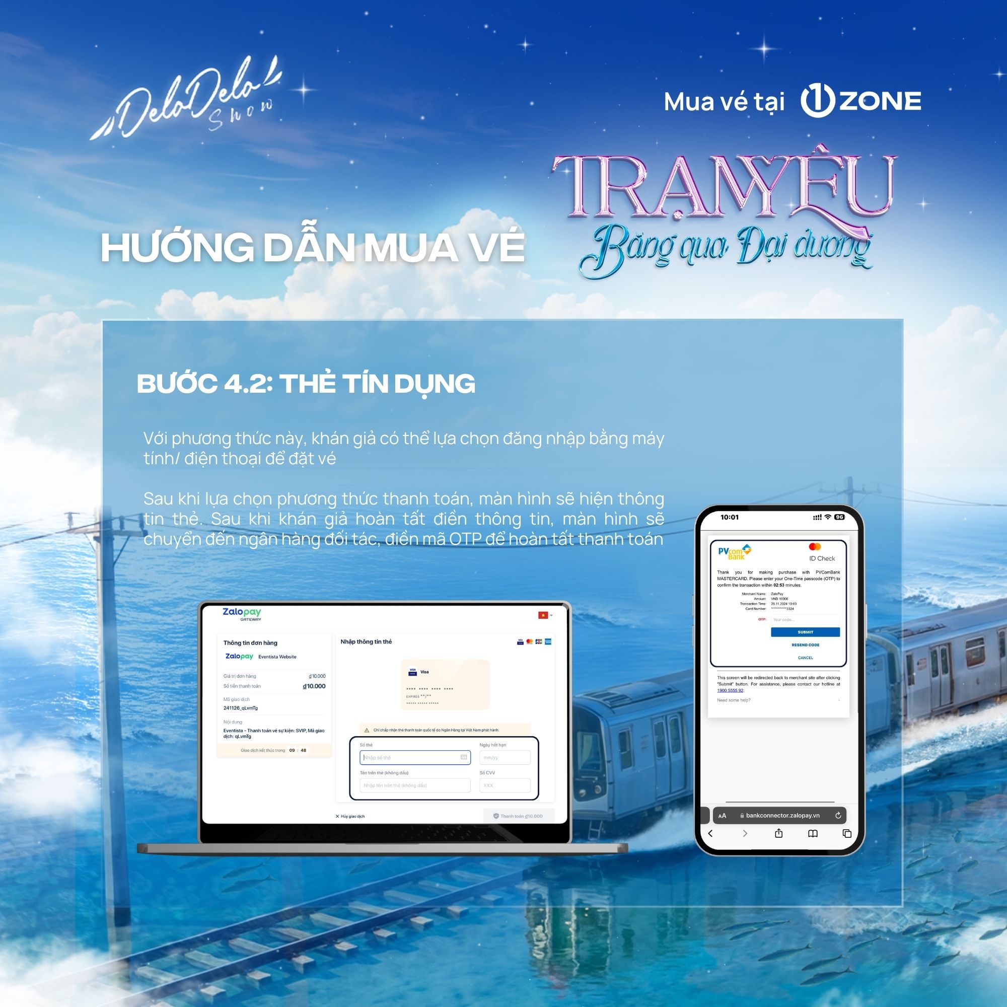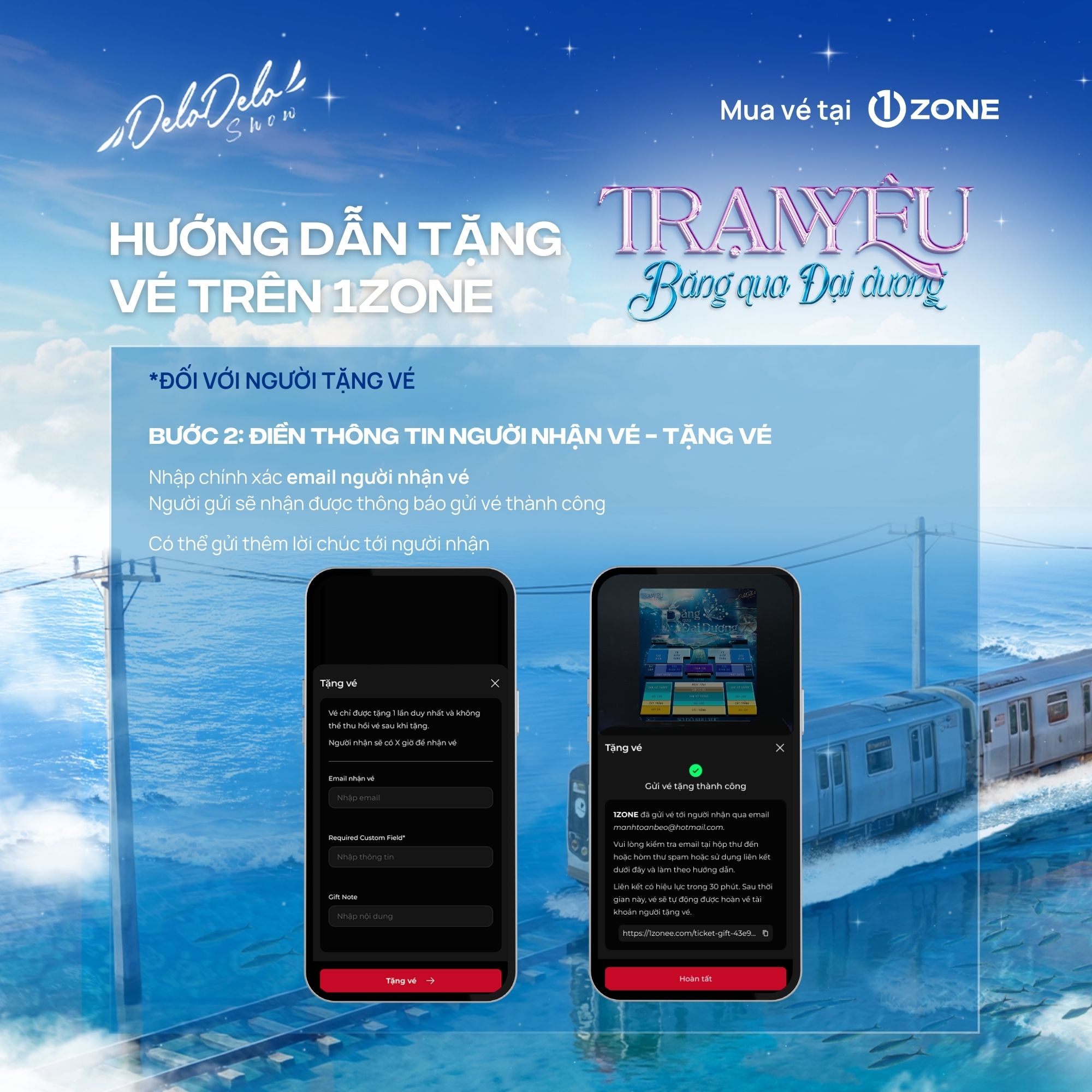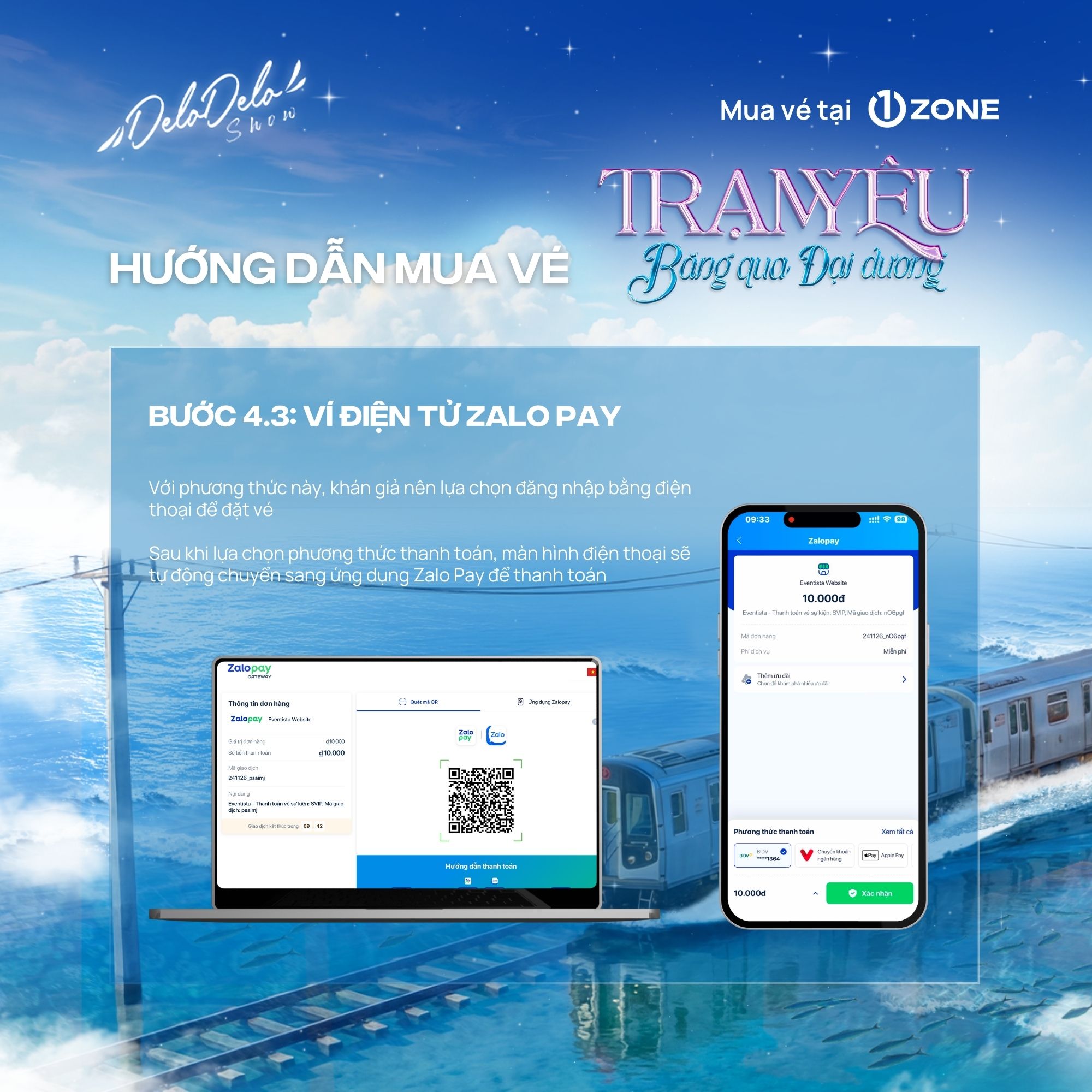+ 1ZONE là đơn vị bán vé độc quyền duy nhất được Delodelo show ủy quyền cho sự kiện Trạm Yêu - Băng qua Đại Dương. Quý khán giả cần thận trọng tránh mua phải vé trên các cổng bán vé giả mạo.
