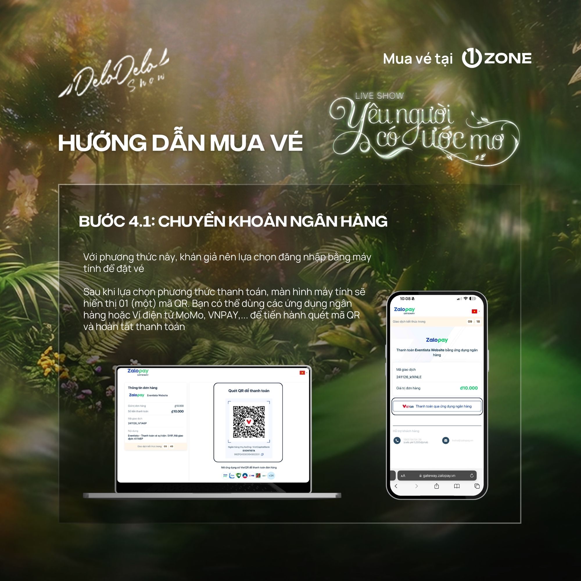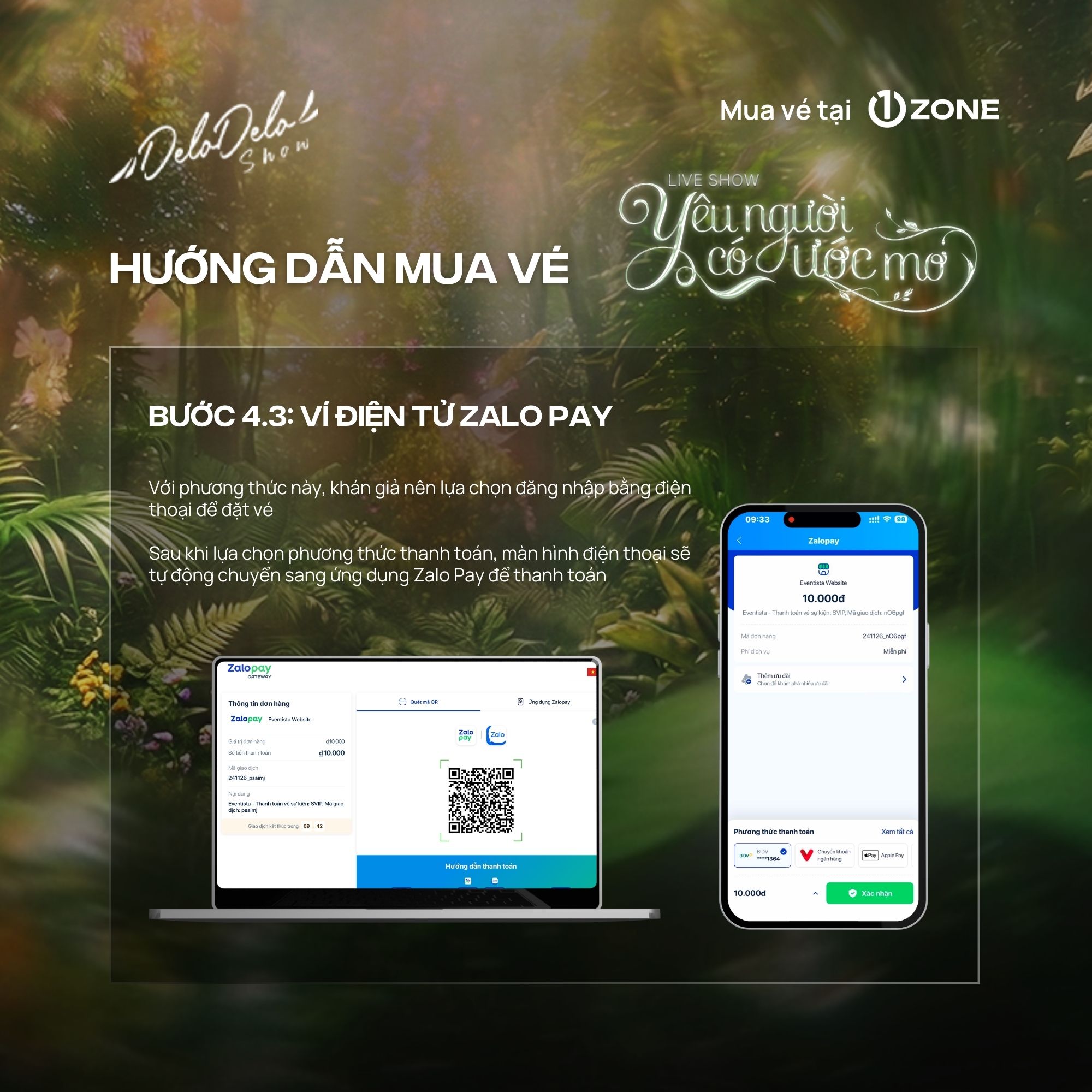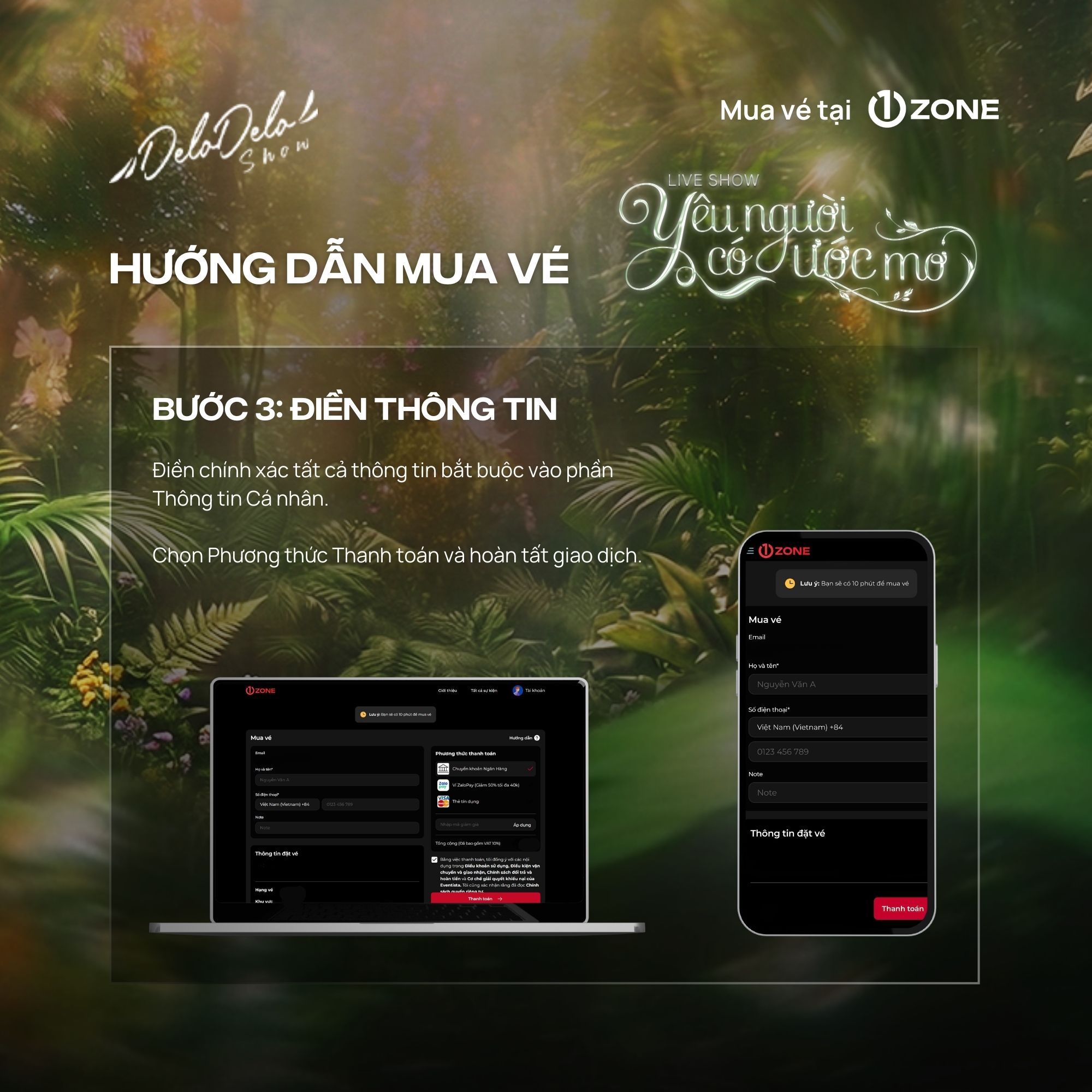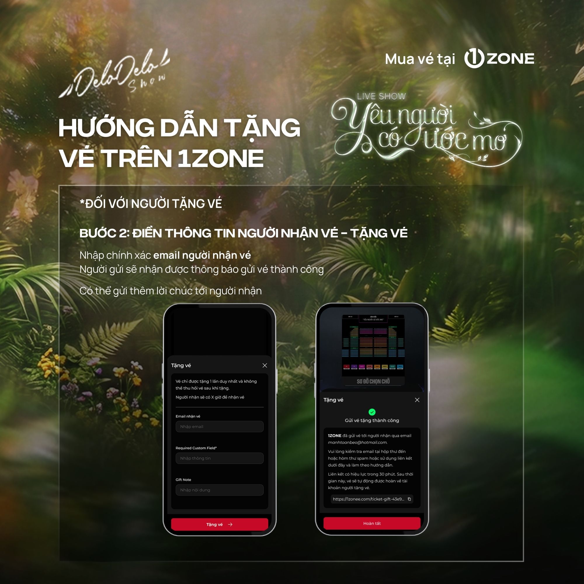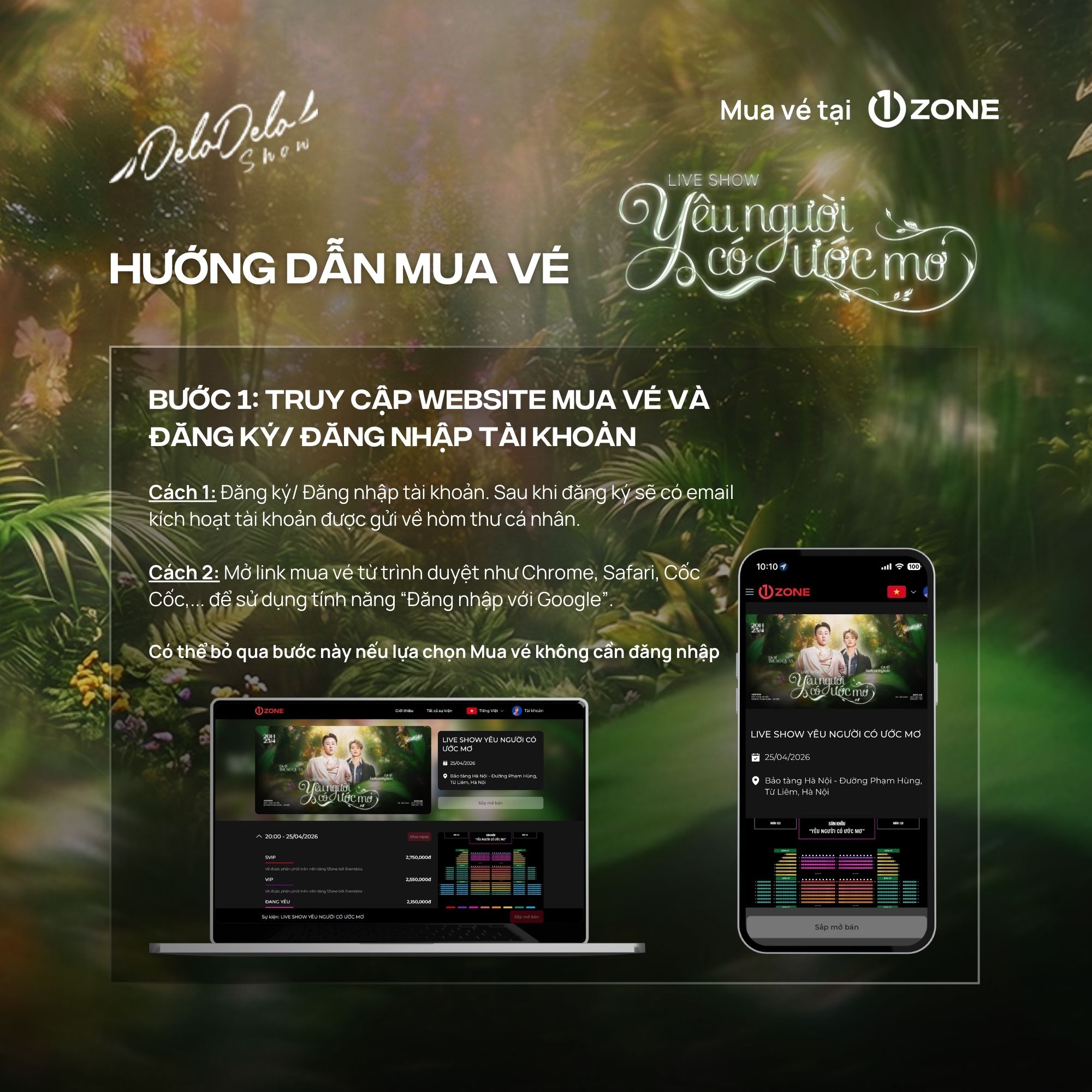 + 1ZONE là đơn vị bán vé độc quyền duy nhất được Delodelo Show ủy quyền cho Liveshow "Yêu người có ước mơ" Quý khán giả cần thận trọng tránh mua phải vé trên các cổng bán vé giả mạo.